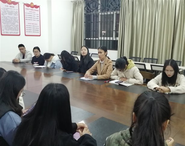 2019年11月10号晚7:00-8:00,法律与公共管理学院法学与社会工作专业支部在第一教学楼109会议室召开了主题教育学习活动。本次活动的主要目的是让党员同志们通过对照党章查找出在党员意识、担当作为、服务师生、遵守纪律、立德树人等方面自身所存在着的差距和不足,进而形成问题清单,然后分析原因并提出整改措施。法学与社会工作专业支部全体党员以及预备党员参加了活动。此次活动主要由党支部书记刘丹同志主持。