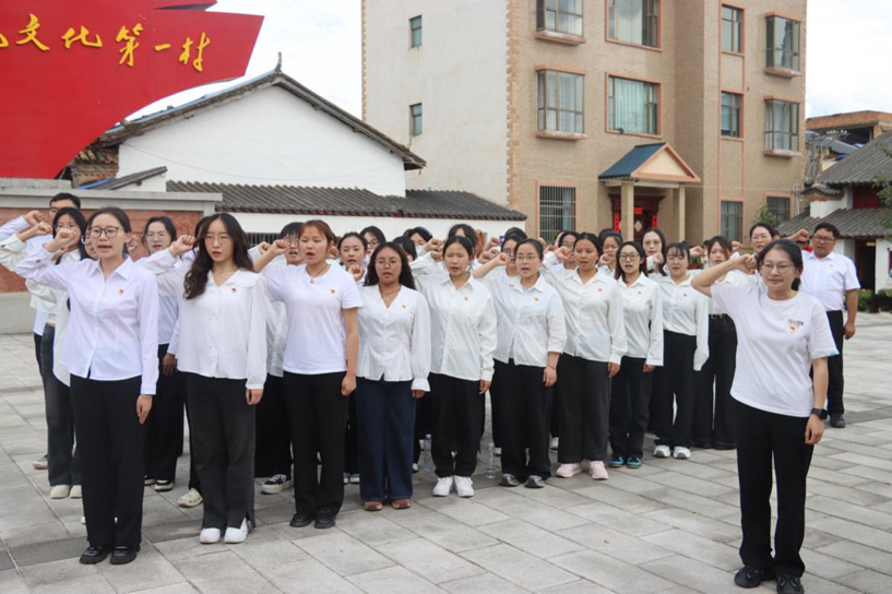 为进一步激发青年学子的爱党爱国热情,增强大学生的历史使命感和责任感,2025年10月15日,法学与社会学学院组织学生党员、入党积极分子和优秀学生干部代表到曲靖市麒麟区三宝街道五联社区红军过楼遗址,开展了“传承红色基因,赓续红色血脉”主题党日活动,学生第一党支部书记何所永老师、学生第二党支部书记任爽老师主持活动。