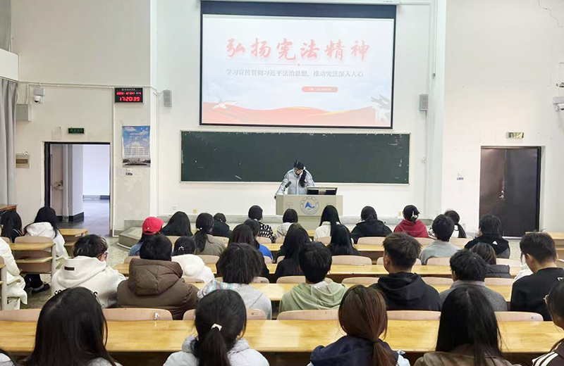 在第十二个国家宪法日之际,我校围绕“学习宣传贯彻习近平法治思想,推动宪法深入人心”主题,在宪法宣传周期间组织开展了形式多样、内涵深刻的系列宣传教育活动,着力弘扬宪法精神、增强法治观念,营造全员尊法学法守法用法的良好氛围。